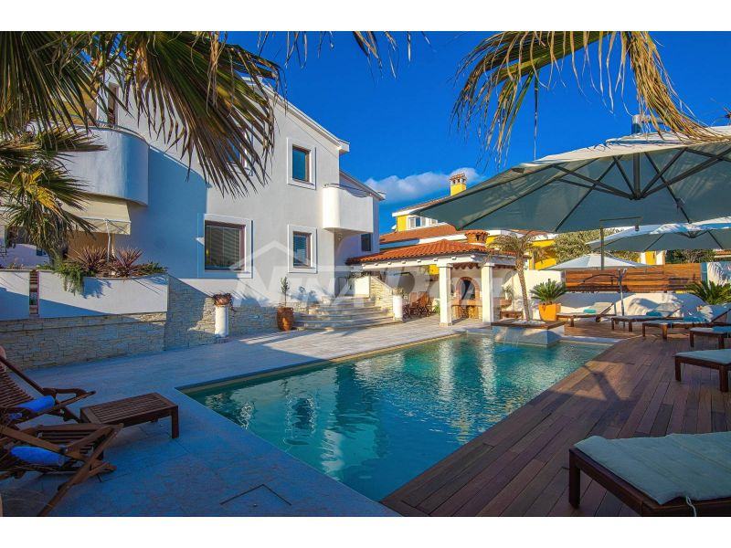 Prodaje se luksuzna villa koja se nalazi na samome ulazu u mjesto Diklo.Mirna i tiha lokacija,blizina mora a sakrivena od pogleda i ljetne buke.Kuća je rađena za sebe, a ne za daljnju preprodaju ,tako da je prilikom gradnje posvećena maksimalna pažnja svakome detalju.Vrhunski materijali što je vidljivo i iz samog okoliša i interijera objekta.Sastoji se od dva luksuzna dvosobna stana,dva jednosobna,dva studio apartmana,konobe,,podruma,crne kužine(ljetna kuhinja) i garaže.Kuća je trenutno u turističkom najmu tako da omogućava relativno brzi povrat investicije(ukoliko se kupuje sa tim ciljem).