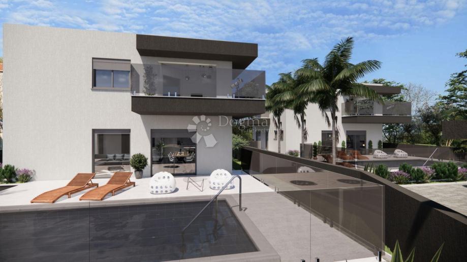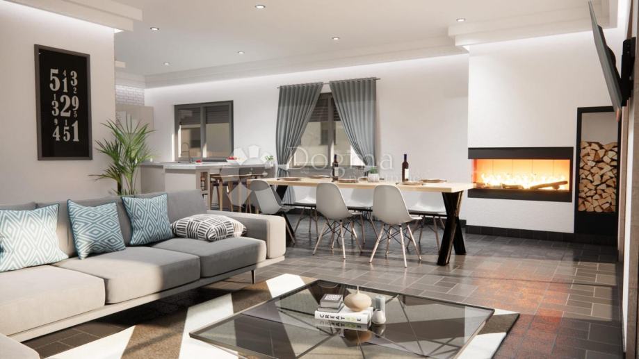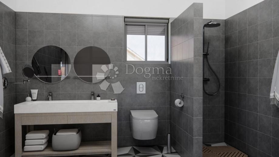 Vila se sastoji od prizemlja i prvog kata, pružajući dovoljno prostora za udoban boravak. Prizemlje obuhvaća prostrani dnevni boravak, odvojenu kuhinju i blagovaonicu, idealne za okupljanje s obitelji i prijateljima. Tu su i četiri prostrane spavaće sobe, svaka sa svojom kupaonicom, što pruža privatnost i udobnost za sve goste. Tri velike terase omogućuju vam da uživate u prekrasnom pogledu na okoliš i opustite se na otvorenom.