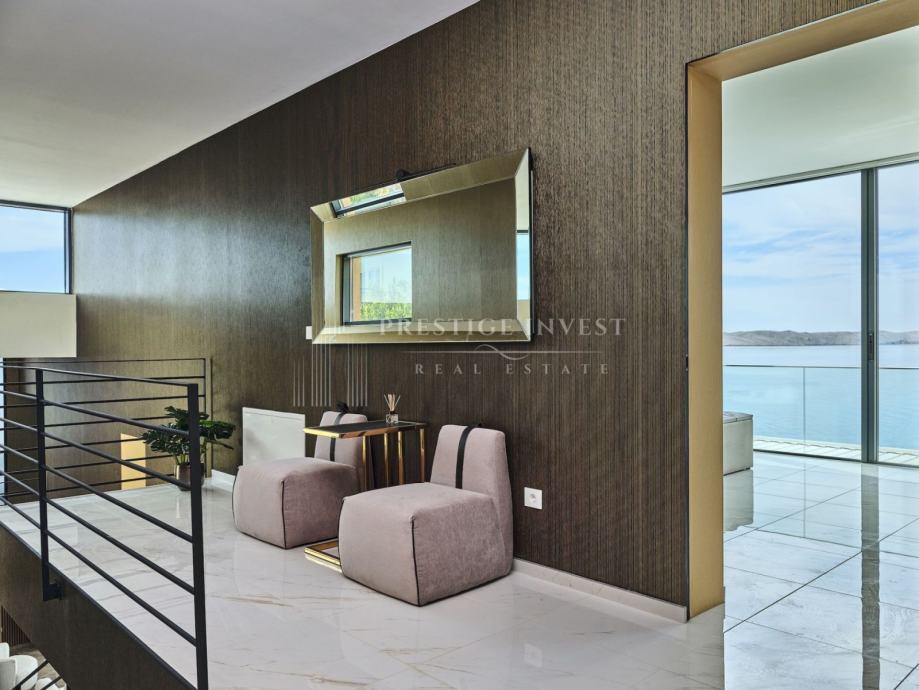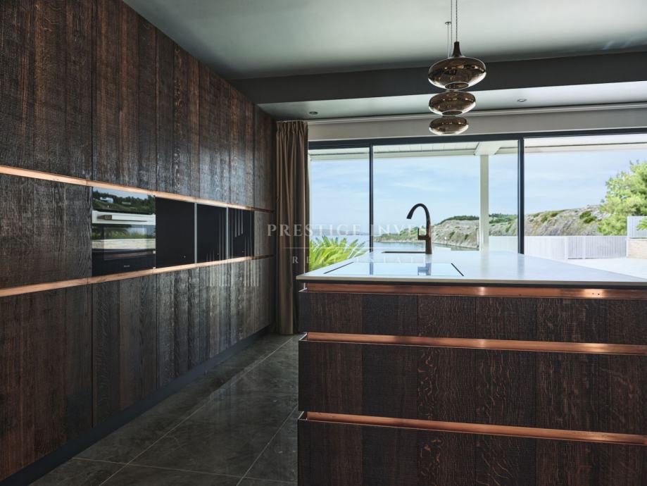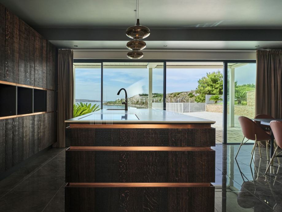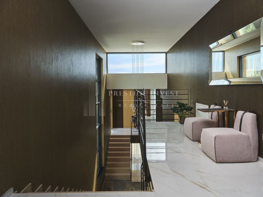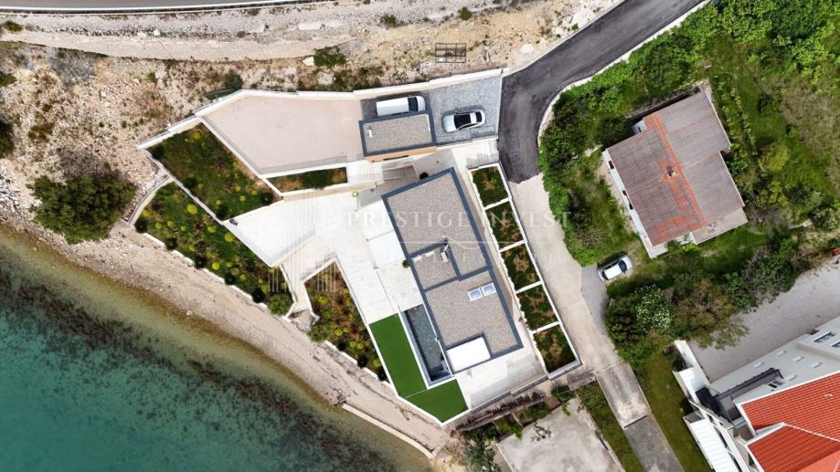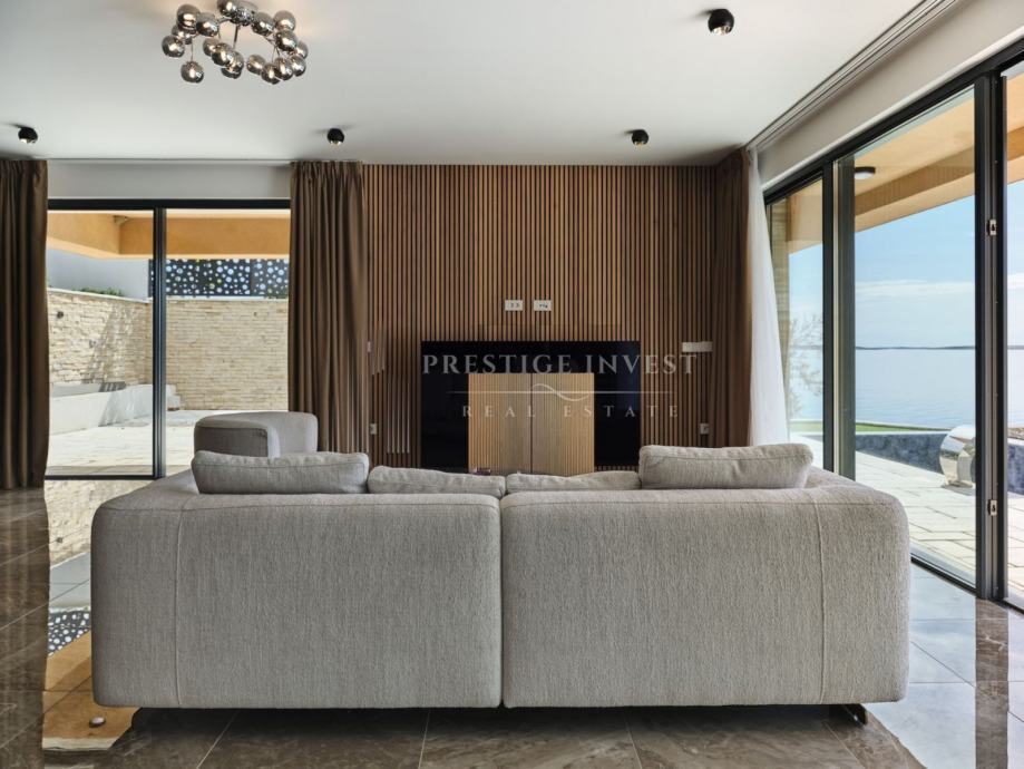 Prošetajte ovom vilom i doživite osjećaj harmonije s okolinom i mediteranskom prirodom, prvenstveno zbog njezine strateške lokacije koja nudi prostrane, neometane poglede na zadarski arhipelag i otoke. Sve sobe opremljene su visokokvalitetnim aluminijskim prozorima trostrukog stakla, dodatno ističući eleganciju ove impresivne nekretnine. Vanjski prostor besprijekorno se uklapa u cjelokupni dizajn, ukrašen luksuznim palmama i biljkama u vrtu.