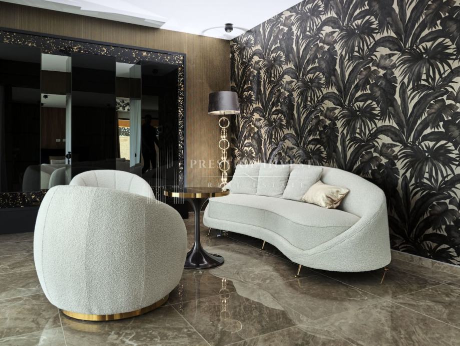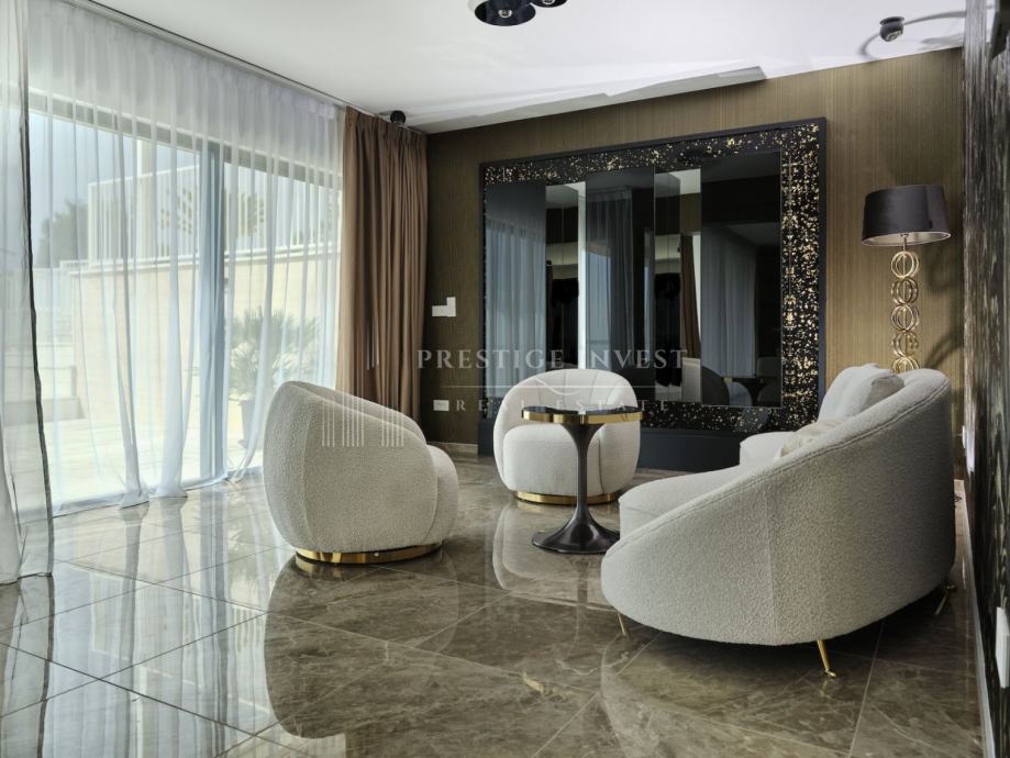 Doživite vrhunac luksuznog života s Villom Versace, ekskluzivnom nekretninom smještenom na prostranom zemljištu od 1.341 m2, smještenom uz obalu mora uz plažu i mulom za vez brodova.