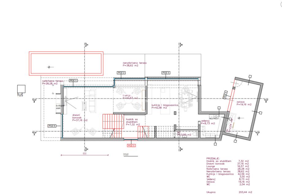 Na prizemlju se nalazi i dodatni toalet, prostorija za pranje rublja i ostava.