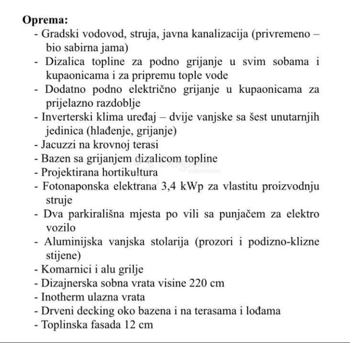 Vila je pri samom završetku tako da je idealan trenutak da dođete, pogledate i osigurate si ovako preljepu, modernu i izuzetno kvalitetnu nekretninu kao sigurnu investiciju koja vam u njenom boravku jamči nezaboravne trenutke, osjećaj luksuza i ljepote...