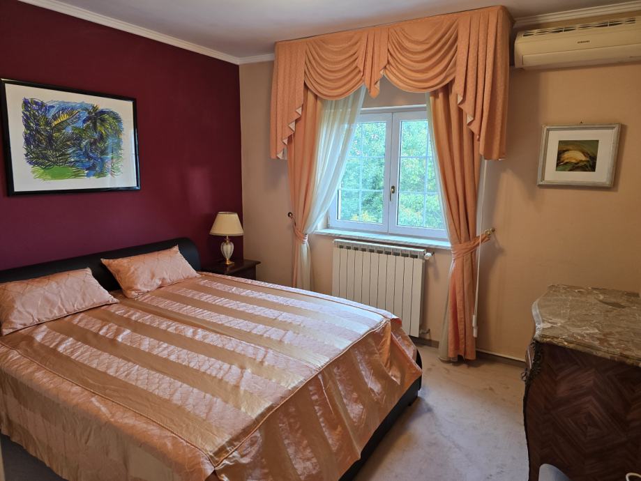 VILLA OPATIJA se nalazi u prekrasnom mirnom prirodnom okruženju sa pogledom na more i u blizini svih sadržaja...adresa je Laginjina ulica 41 u Pobrima-okolica Opatije...villa ima ukupno 430 m2 i nalazi se na uređenoj okućnici od 625 m2...sastoji se od dva exclusivna stana , wellness oaze, ljetne kuhinje sa roštiljem i sunčalištem, vrhunskim vinskim podrumom/ tavernom za zajednička druženja, garažom za dva vozila i još tri dodatna parkirna mjesta...u villi se nalaze vrhunska oprema sa probranim materijalima i namještajem...villa za jedinstveni boravak i življenje..jedinstvena pozicija udaljenost od centra Opatije je 3 km, a od centra Matulja i brze ceste samo 0.5 km....villa sa atraktivnom i zanimljivom prosloscu....cijena najma je dodatno snižena i iznosi = 4.500,00 EUR / mjesečno...villa se dugoročno iznajmljuje obitelji ili poslovnim ljudima...grijanje centralno na lož ulje i klima uređaji....BEZ AGENCIJA !!!!!! DIREKTNO OD VLASNIKA uz agencijsku uslugu gratis...SVAKAKO POGLEDATI!!!! PRILIKA!!!!