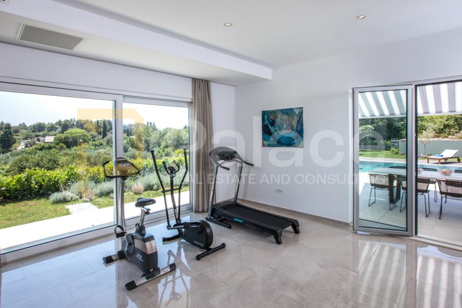 Vila je opremljena smart home sustavom i uređena kvalitetnim, suvremenim namještajem i uređajima.