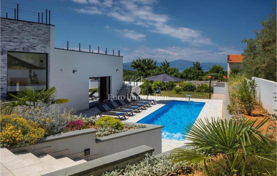 Krk, šira okolica, prodaje se samostojeća villa s bazenom i pogledom na more
