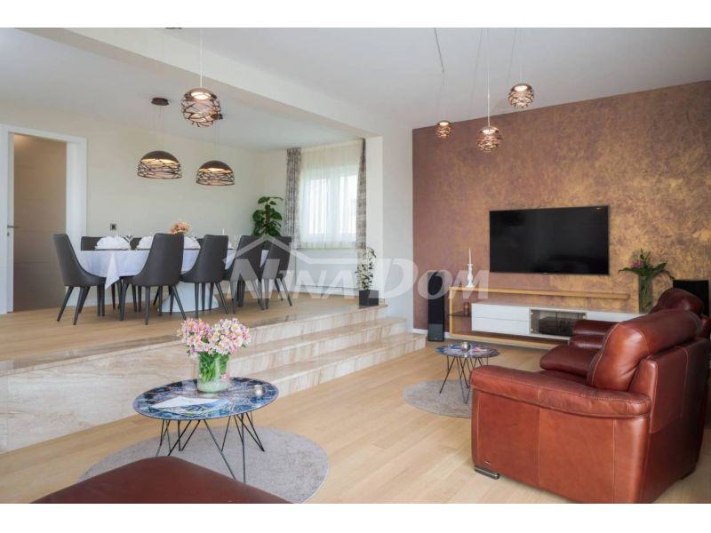 Inaće kuća je rađena sa probranim materijalima i opremljena sa podnim grijanjem u kupaonicama,dizalicama topline,te skupocjenim sanitarnim i keramičkim materijalima.(hansgroe,hrastovi parketi,porculanska keramika itd.)
