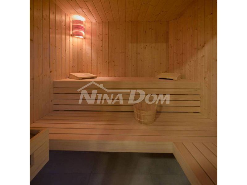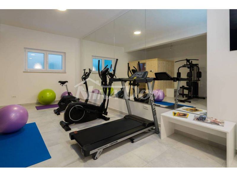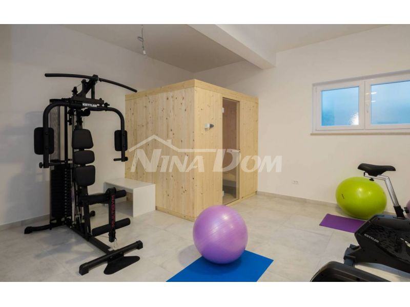 -U suterenu se nalaze strojarnica,skladišni prostor,soba za druženje,biljar,teretana,praonica rublja,sauna sa kupatilom odakle se izlazi na prostrano dvorište sa bazenom,ljetnom kuhinjom i maslenikom.