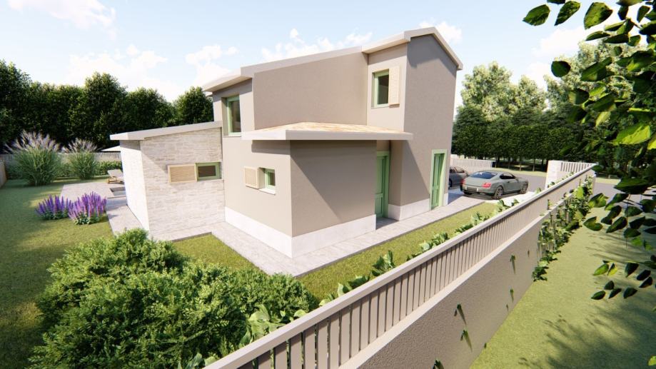 Prodaje se kvalitetno projektirana kuća u izgradnji na mirnoj i atraktivnoj lokaciji u okolici Tinjana – savršen spoj privatnosti, komfora i investicijskog potencijala.
