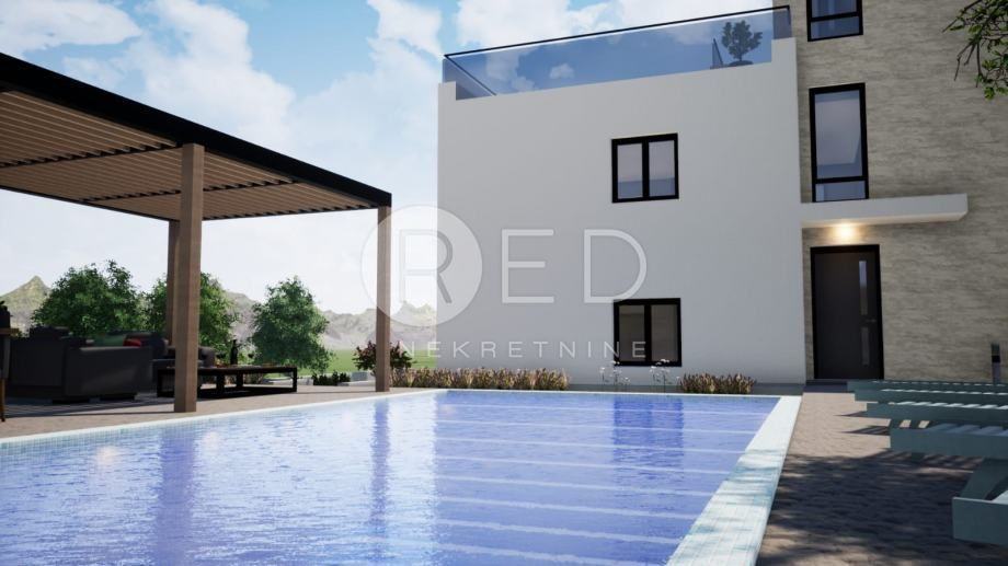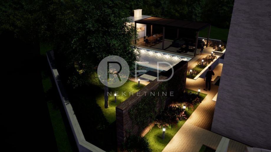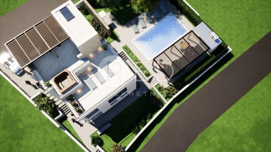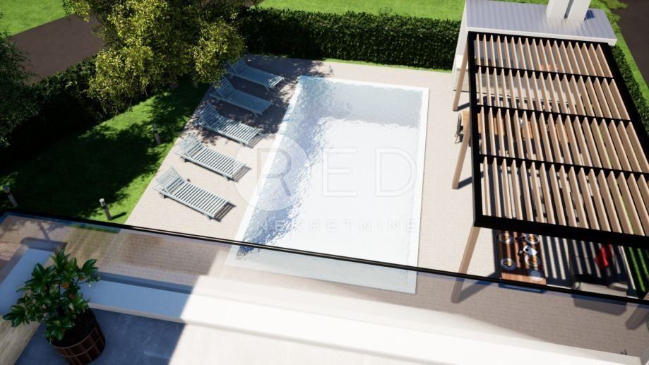 Na terasi je predviđen jacuzzi, bar i popratni sadržaji za odmor. U dvorištu se nalazi grijani bazen, četiri vanjska parkirna mjesta.