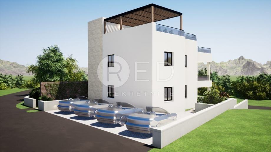 prizemlja, kata i krovne terase na drugom katu, netto stambene površine od 267 m2. U prizemlju se nalaze četiri spavaće sobe, dvije kupaonice i spremište.