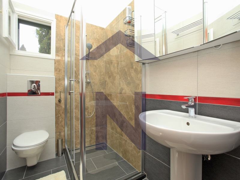 Na prvom katuse nalazi aperitiv bar sa stolom za biljar, 2 spavaće sobe, 1 kupaonica i balkon. Kat je postignut putem vanjskog stubišta. Vila je klimatizirana.