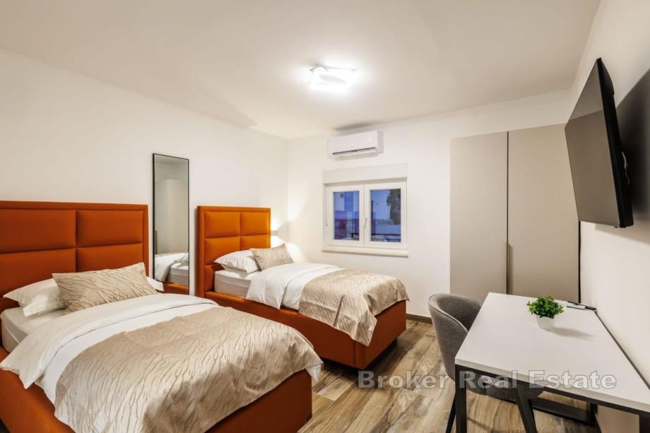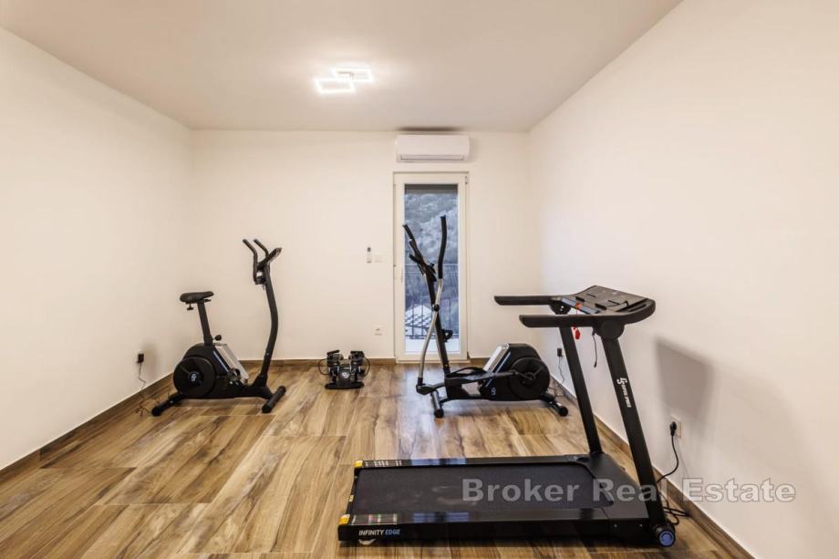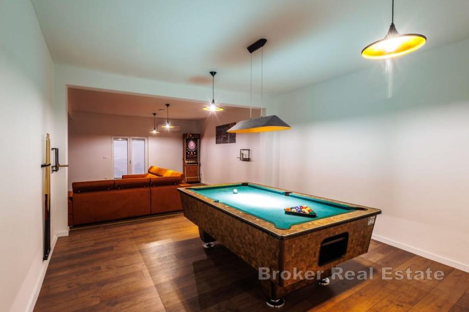 U prizemlju objekta nalazi se dvosobni apartman s ulazom odvojenim od ostatka ville, idealan za goste ili samostalno korištenje. Na prvom katu smještene su tri spavaće sobe, praonica i veliki otvoreni prostor koji predstavlja dnevni boravak i igraonicu.