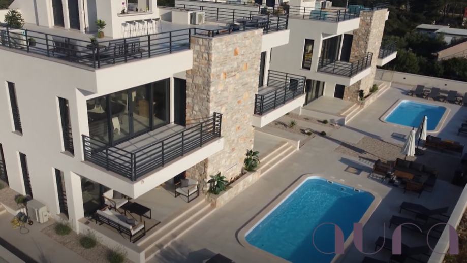 We mediate the sale of two Villas on the island of Šolta, Nečujam. Both Villas are identically and built-in 2021, each containing four luxury apartments that are fully equipped and furnished. All apartments have a separate living area (living room, dining room and kitchen), sleeping area (two bedrooms, two bathrooms, storage), and a balcony. Each apartment also has a parking space. Apartments can also be purchased individually.