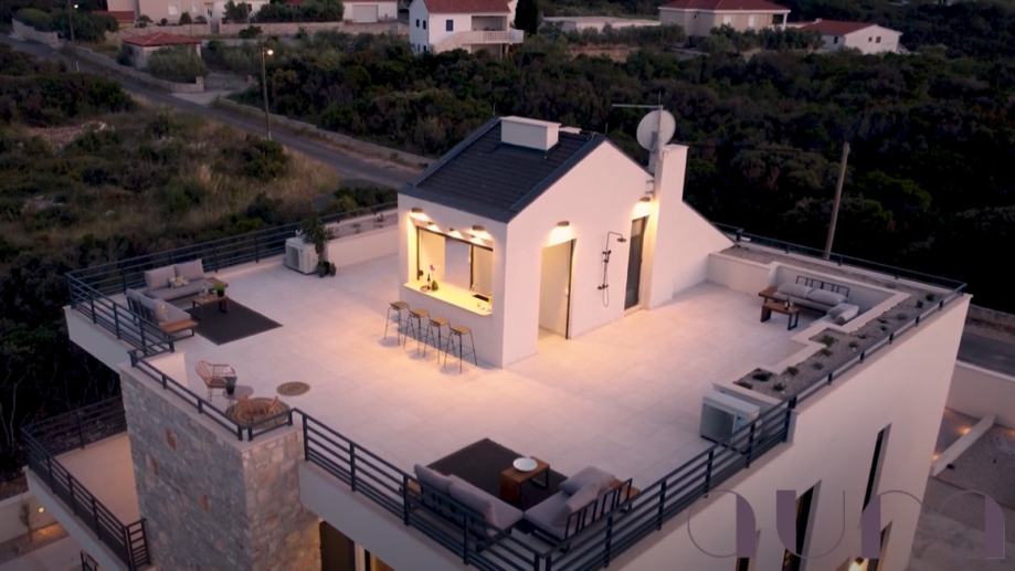 On the roof of each Villa, there is a spacious terrace with a covered bar, ideal both for drinking morning coffee and for evening gatherings with friends over a glass of wine and numerous gourmet delicacies. This part of the Villa offers that magical experience that combines the beauty of the sea, the pressure, unreal sunsets and a fantastic view of the nearby islands and Split itself.