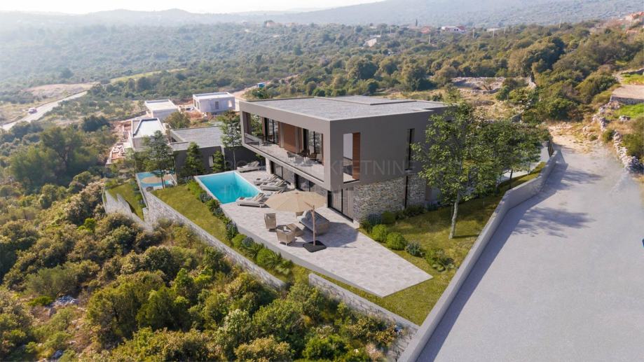 Prodaje se prekrasna samostojeća vila u Vinišću. Vila se nalazi u kompleksu od šest vila. Nalazi se na uzvisini te ima odličan pogled na more. Sastoji se od prizemlja i kata. Prizemlje se sastoji od dnevnog boravka s blagovaonicom i kuhinjom, jedne spavaće sobe s kupaonicom, gospodarstva i toaleta. Prizemlje ima ulaz u vilu te vanjske natkrivene prostore u obliku terasa, vrtova i sunčališta te natkrivenu ljetnu kuhinju. Prvi kat je povezan s prizemljem dvokrakim zatvorenim stubištem gdje su projektirane tri spavaće sobe s pripadajućim kupaonicama i natkrivenim terasama. Oblik vile je nepravilni „T“ pravokutnik s ravnim neprohodnim krovom. Također, ispred vile je bazen s sunčalištem. Vili pripadaju i dva parkirna mjesta.