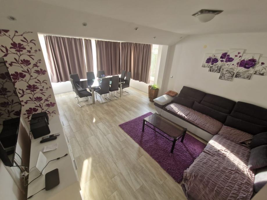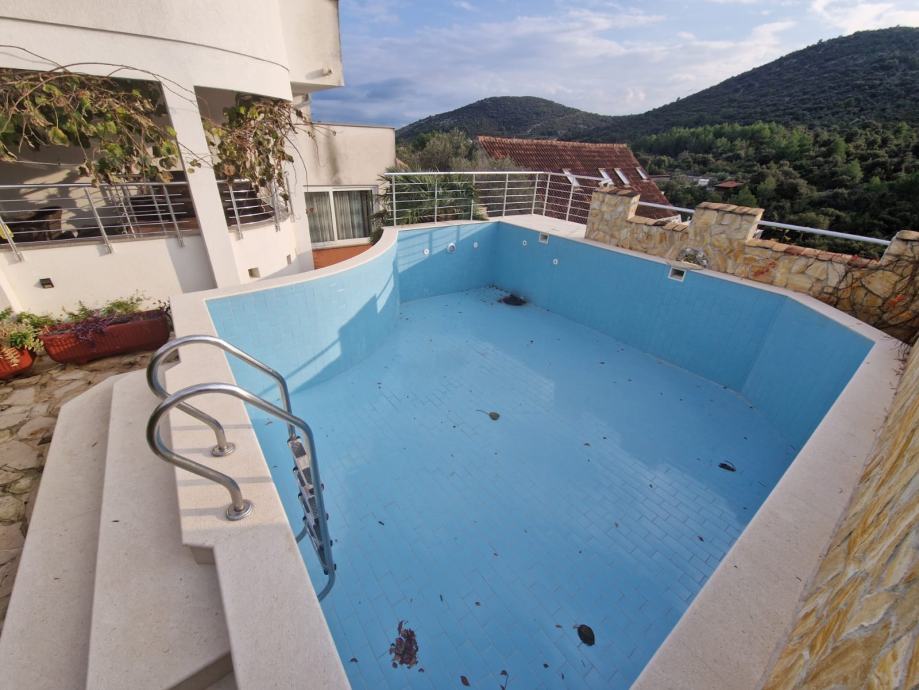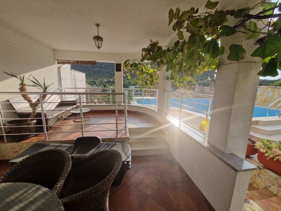 Ukupna zatvorena povrsina stanova je cca 170m2, sa dosta terasa, balkona, vrtom, dvoristem, saunom 5m2, ljetnom kuhinjom 10m2 sa kominom te bazenom 43m2.