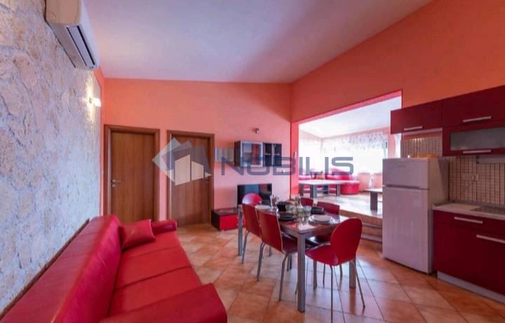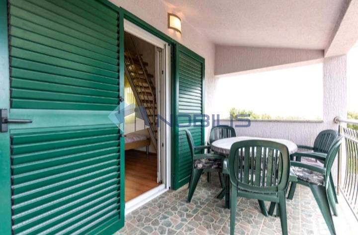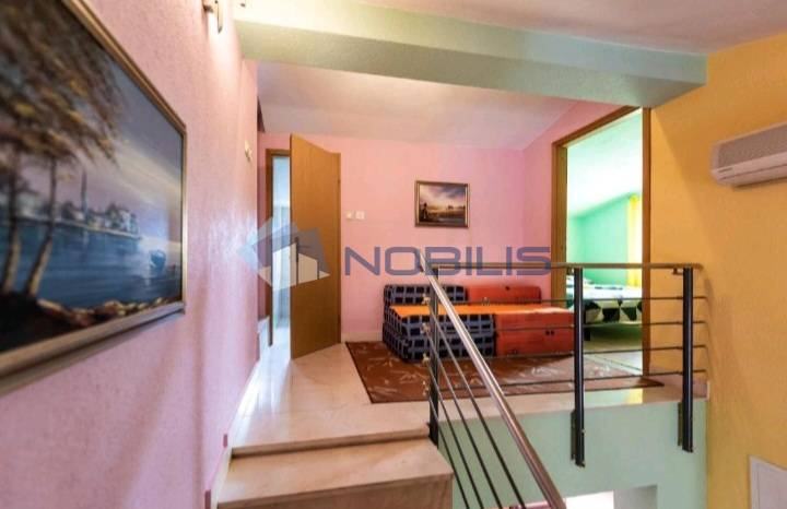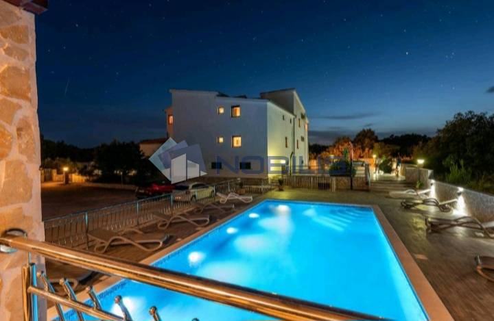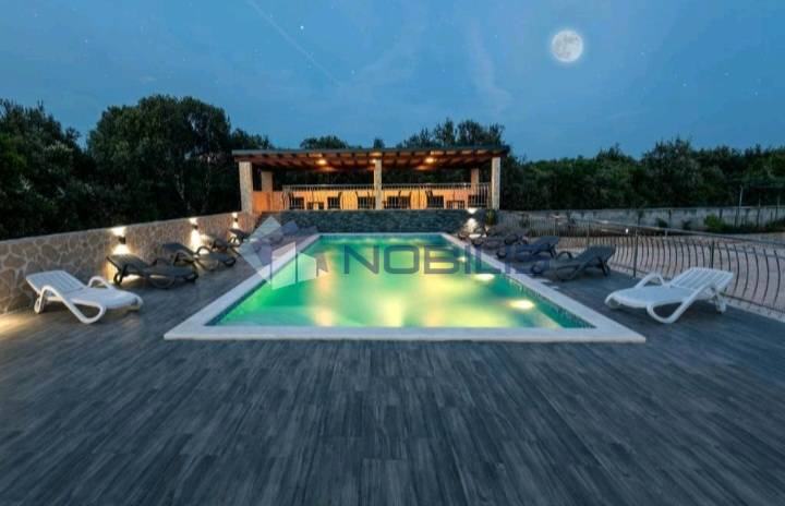 Trogir, Vinišče, Marina - prodaje se prekrasna kuća sa 6 uhodanih apartmana. Apartmani su 2 trosobna, 2 dvosobna, te 2 jednosobna. Cijela kuća je kompletno uređena i namještena, te služi za turističku namjenu. Nalazi se na uređenoj okućnici od 1700m2, gdje je i bazen 60m2, lijepo uređena terasa koja je jednim djelom natkrivena. Ovdje se nalazi veliki stol za ugodna večernja druženja. Postoje još i 3 pomoćna objekta, te ljetna kuhinja. Prva plaža je na 300m, prekrasna uvala Ljubljeva.