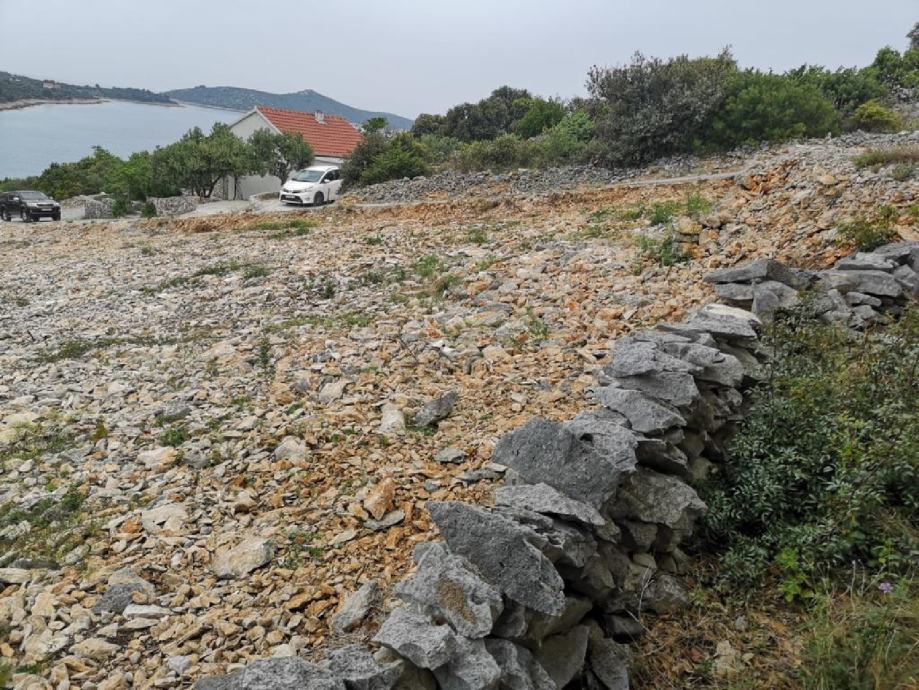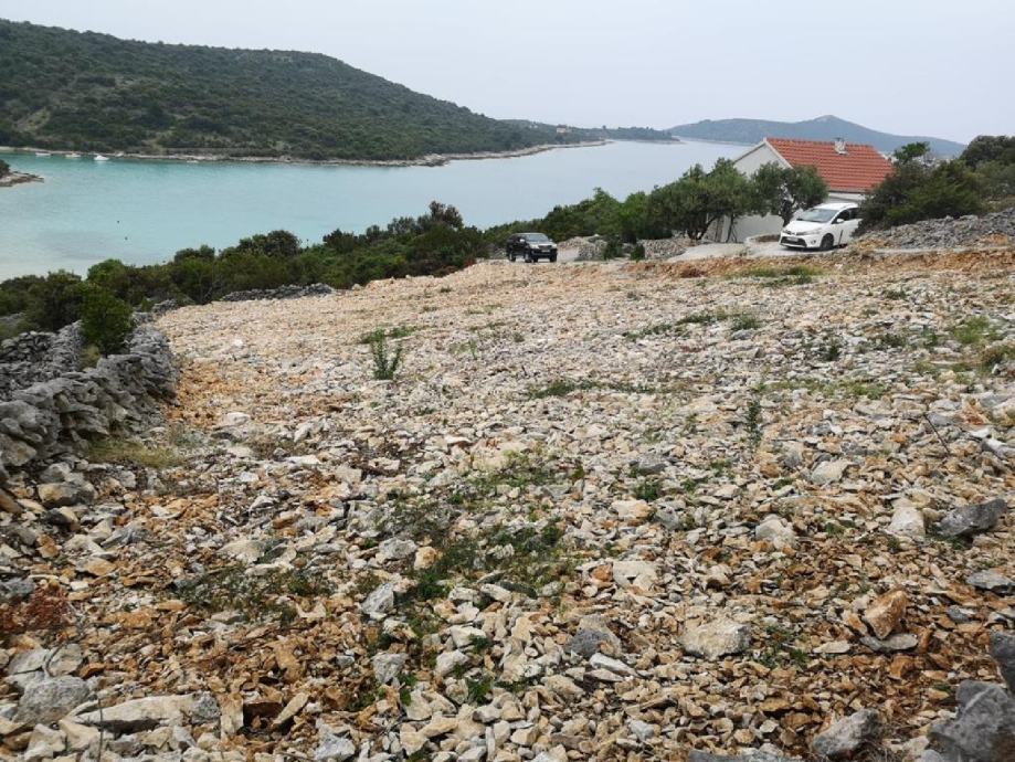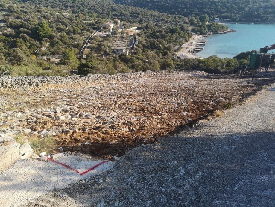 Vinišće uvala Satri Trogir zemljište površine 400 m2 pristupni put betoniran do parcele, vlasništvo uredno, more i plaža udaljeni 100 m , panoramski pogled s parcele, pješčana plaža , izvorni krajolik.