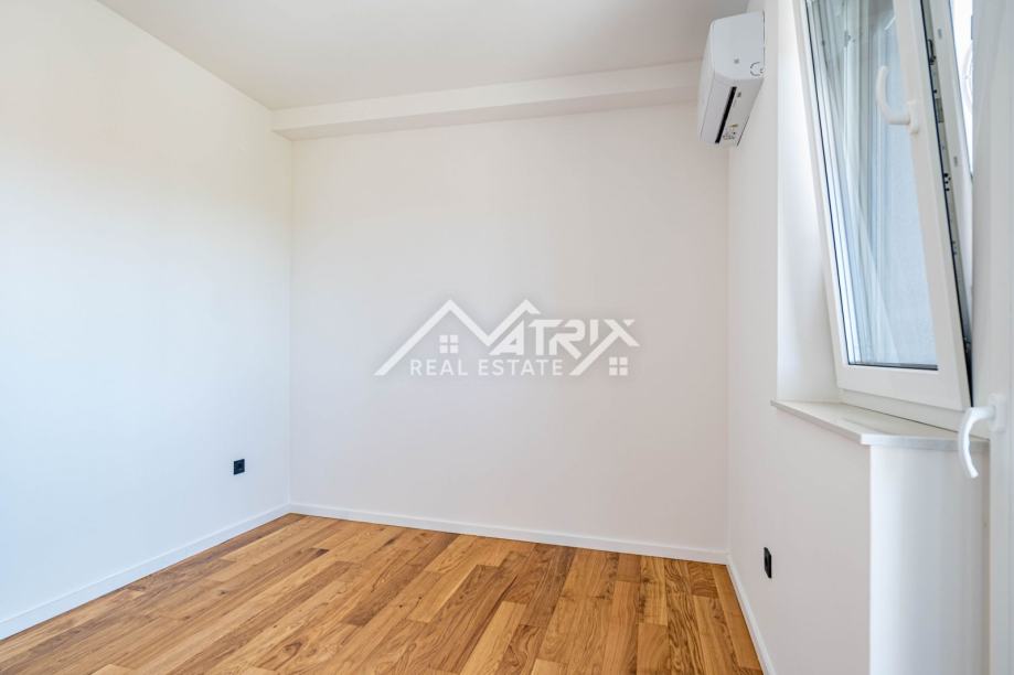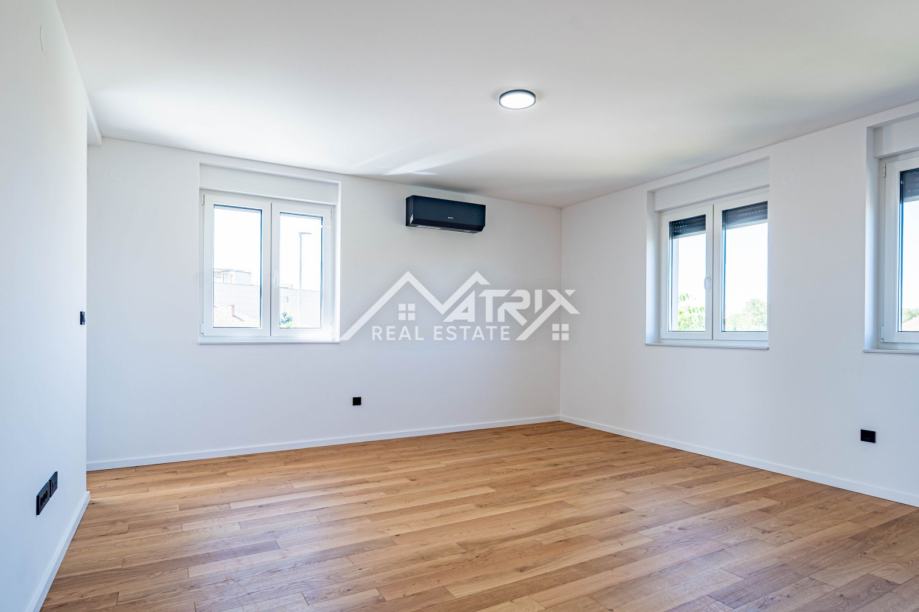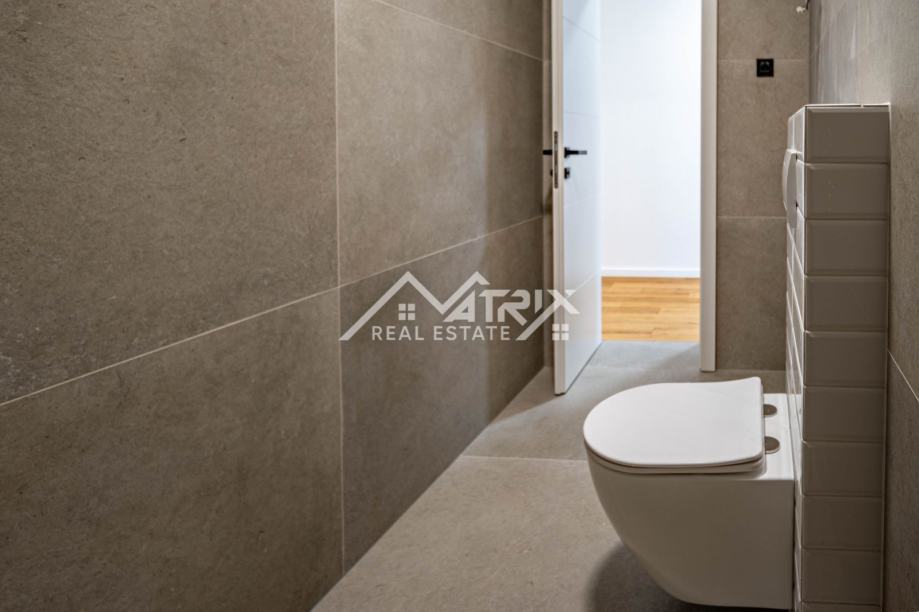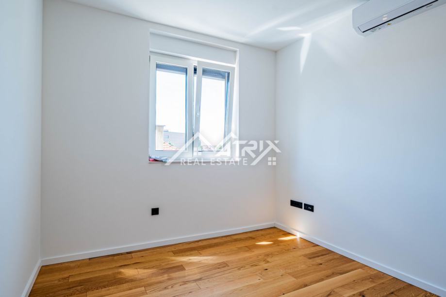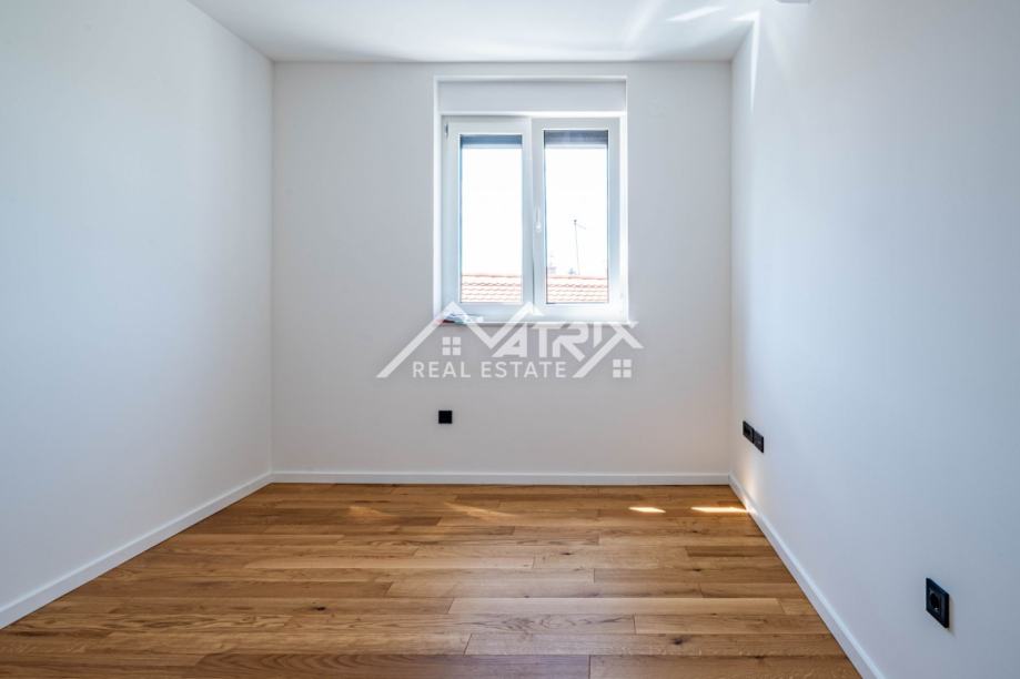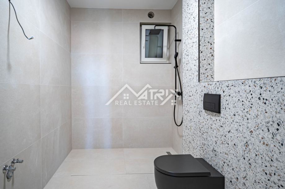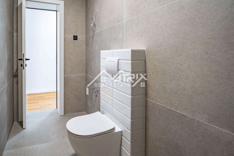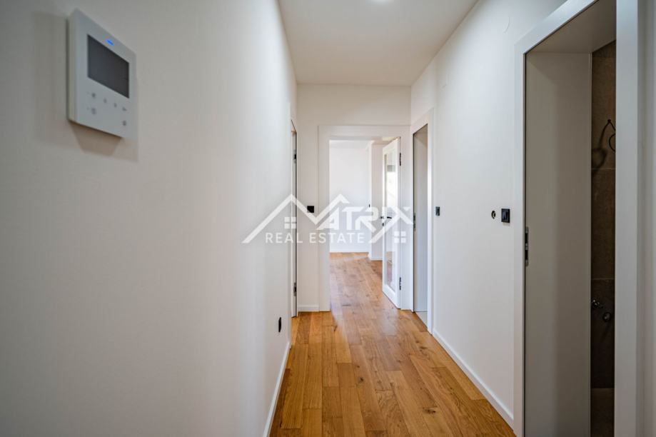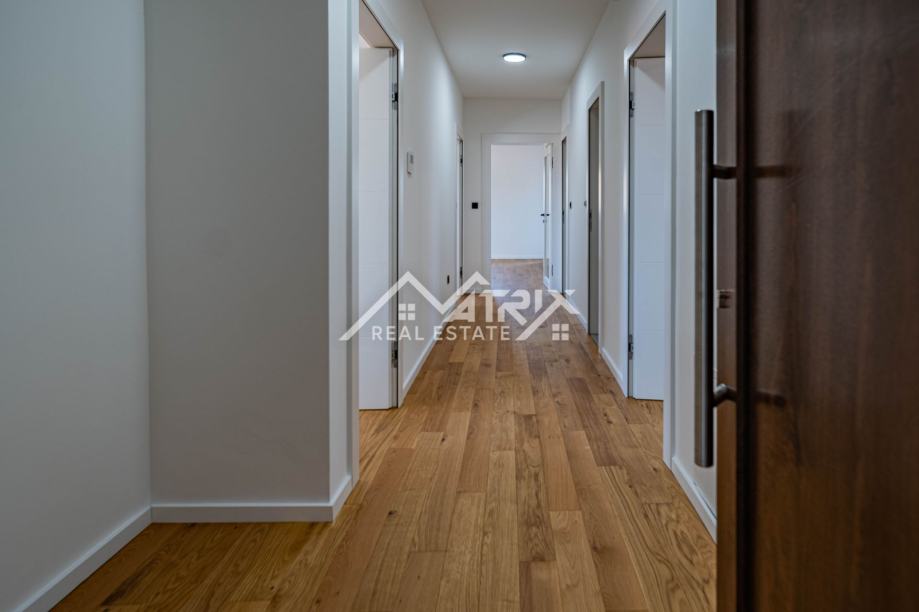 U srcu Vinkovaca, u mirnoj ulici, smjestio se vrhunski četverosobni stan ukupne površine 101,73 m² u novogradnji energetskog razreda A. Prostrani dnevni boravak, orijentiran prema jugu, izlazi na sunčani balkon idealan za jutarnju kavu, dok drugi balkon uz spavaći trakt pruža intiman večernji kutak. Tri udobne spavaće sobe nude dovoljno prostora za obitelj ili goste. Podno grijanje u cijelom stanu i klima-uređaji u svakoj prostoriji jamče ugodnu temperaturu tijekom cijele godine, a automatizirane rolete na tipku te vrhunska Rehau PVC stolarija osiguravaju energetsku učinkovitost i tišinu. Cijena uključuje odabir umivaonika i monobloka s ogledalom; kupaonica je već opremljena keramikom i sanitarijama visokog standarda. Elegantna, zvučno izolirana sobna vrata dodatno naglašavaju luksuz, a vlastito parkirno mjesto brine se za praktičnost. Zgrada posjeduje urednu zemljišnoknjižnu dokumentaciju bez tereta, a uporabna dozvola očekuje se do kraja godine, čineći ovu nekretninu sigurnim i atraktivnim ulaganjem.