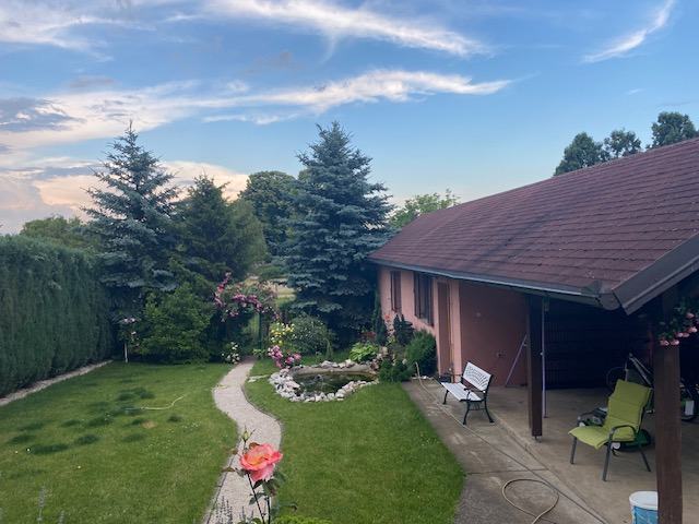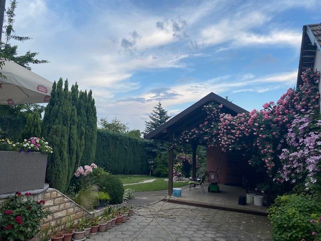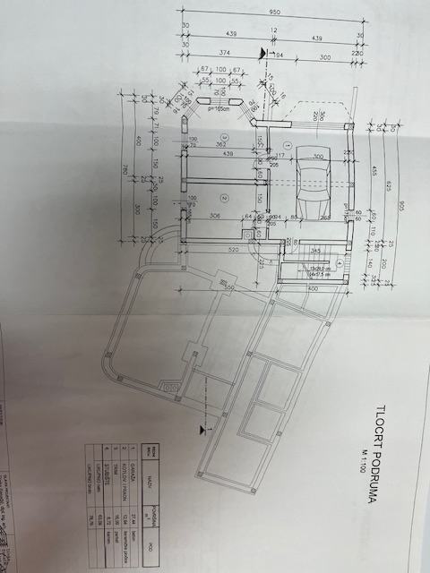 Kuća je prizemna, neto stambene površine 220 m2, sa podrumom i garažom 60 m2, a na parceli se nalazi i pomoćni objekt za stanovanje površine 74 m2.