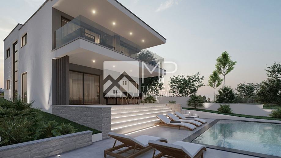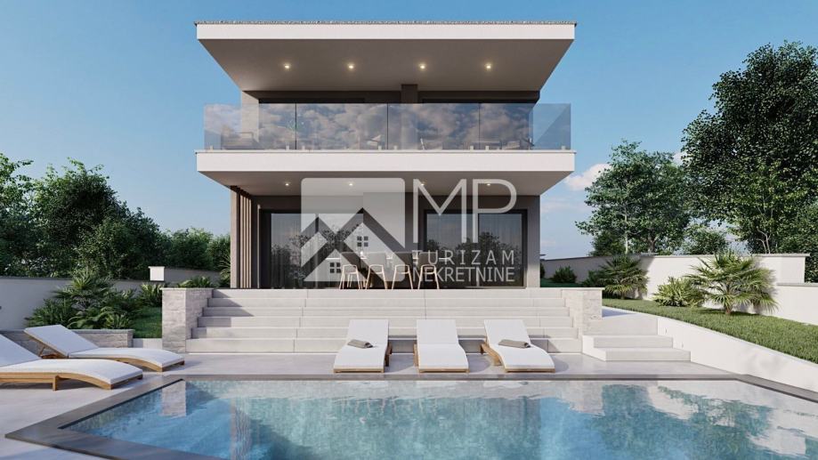 Na izvrsnoj lokaciji u Vinkuranu, u neposrednoj blizini mora i okružena maslinikom, prodaje se moderna vila u roh-bau fazi gradnje. Iako smještena u turističkom mjestu, budućim vlasnicima pruža potpunu privatnost.