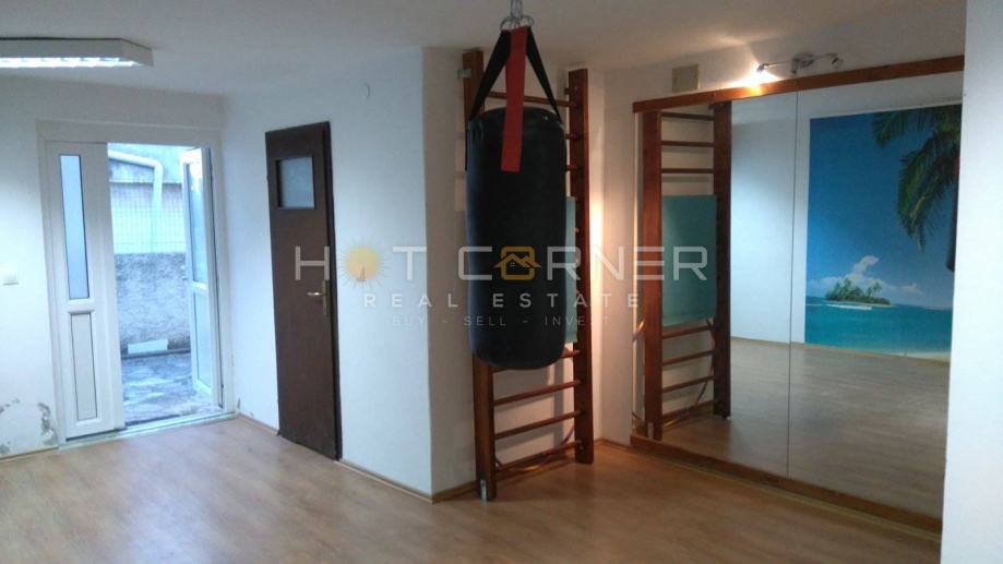 Poslovni prostor površie oko 450 m2 ima svoj zaseban veliki ulaz sa stražnje strane kuće. Poslovni prostor je otvorenog tipa te ima poslovni ured sa kuhinjim i kupaonicom. Poslovni prostor posjeduje i više skladištenih prostora kao i vanjski prilaz za kamione sa glavne prometnice.