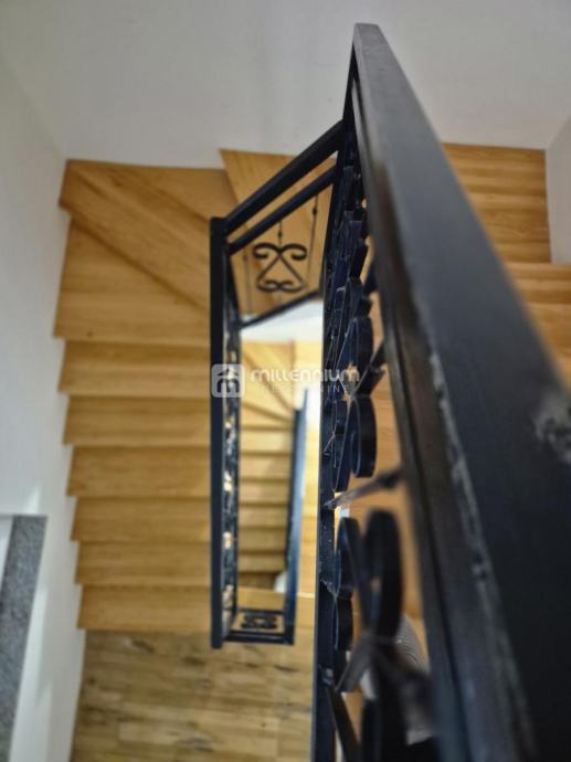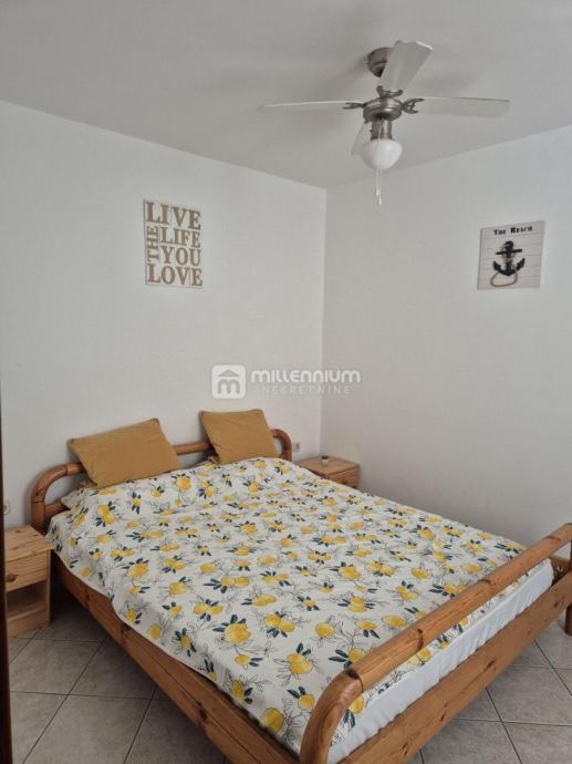 Prodaje se kuća u nizu na izvrsnoj lokaciji, svega 100 metara od mora, prostire se na tri etaže i nudi funkcionalan raspored idealan za obiteljski život ili turistički najam. U prizemlju se nalazi uređeno dvorište površine 15m², kuhinja s blagovaonicom, dnevni boravak, kupaonica te ostava. Prvi kat obuhvaća dvije spavaće sobe, od kojih jedna ima izlaz na balkon, dodatni dnevni boravak te kupaonicu. Na drugom katu smještena je još jedna soba, kuhinja s blagovaonicom i kupaonica, a s ove etaže izlazi se na prostranu terasu od 30m² s predivnim pogledom na more. Kuća ukupno raspolaže sa sedam soba i tri kupaonice, potpuno je namještena i kao takva se prodaje, spremna za useljenje bez dodatnih ulaganja. Spoj blizine mora, funkcionalnog rasporeda i prostrane terase čini ovu nekretninu iznimnom prilikom