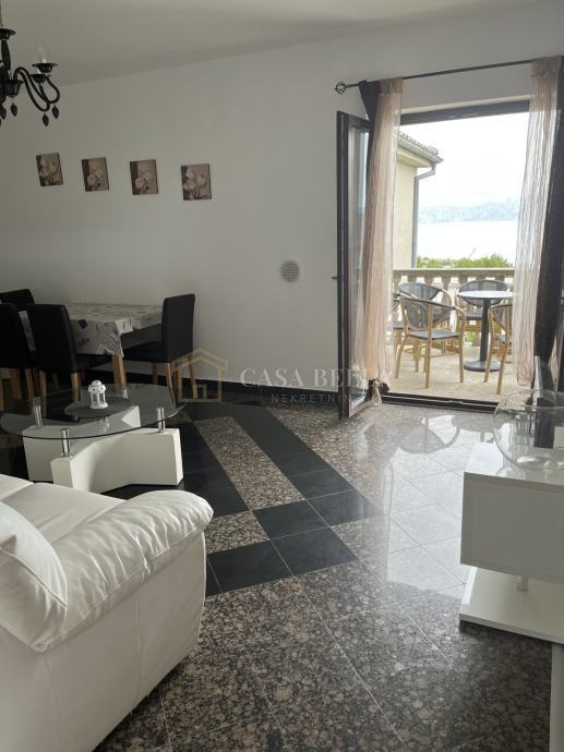 Stan se nalazi na prvom katu kuće s ukupno tri stana, izgrađene 2010. godine. Sastoji se od ulaznog hodnika, kupaonice, dvije spavaće sobe, dnevnog boravka s kuhinjom i blagovaonicom te balkona s lijepim pogledom na more.