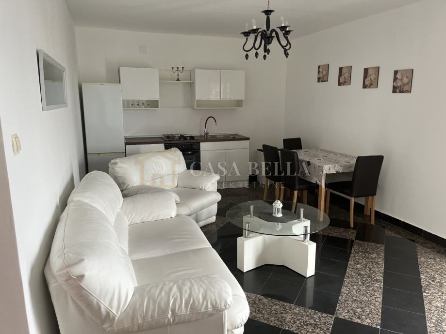 Stan je potpuno namješten, a uz njega dolazi i jedno parkirno mjesto. Smješten je na mirnoj lokaciji, samo nekoliko koraka od mora i plaže.
