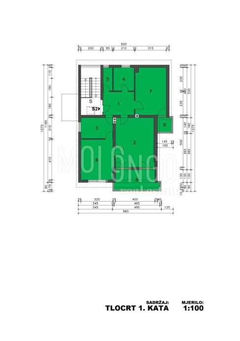 Apartman se nalazi na etaži smještenoj na drugom katu kuće. Ima dvije sobe, dnevni dio, kuhinju, kupaonu, ostavu, veliki hodnik, balkon i terasu.