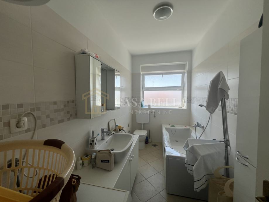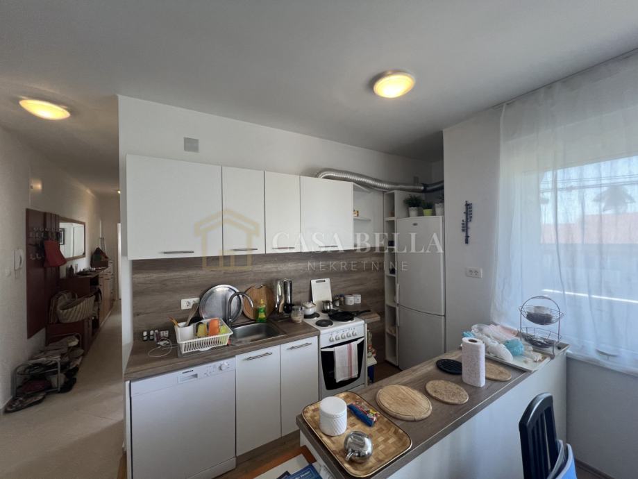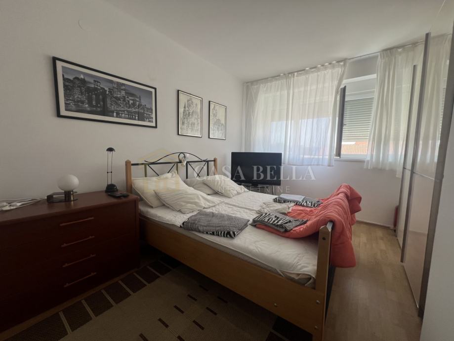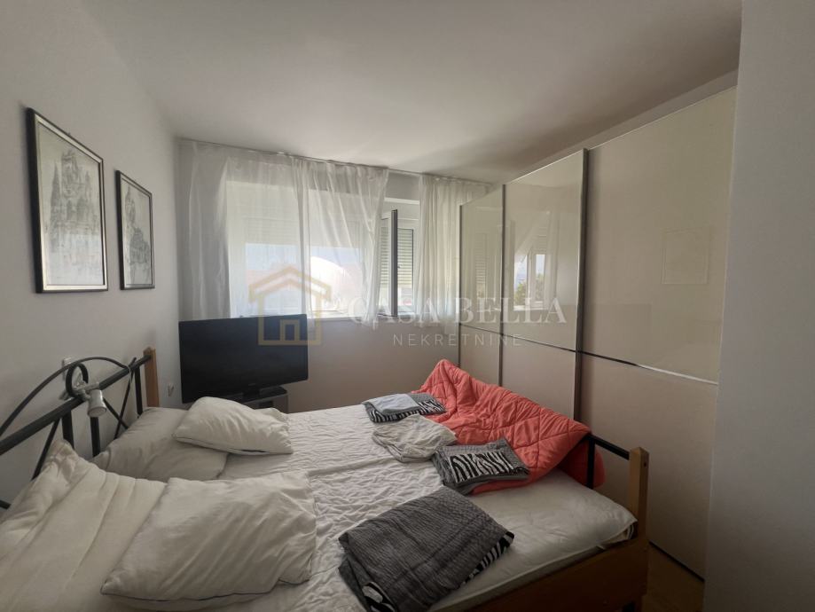 Sastoji se od dvije prostrane spavaće sobe, hodnika, kupaonice, prostranog dnevnog boravka i kuhinje s blagovaonicom. Stan je prozračan i obasjan prirodnom svjetlošću, pružajući ugodan prostor za vas i vašu obitelj. Također, stan ima balkon s prekrasnim pogledom na more.