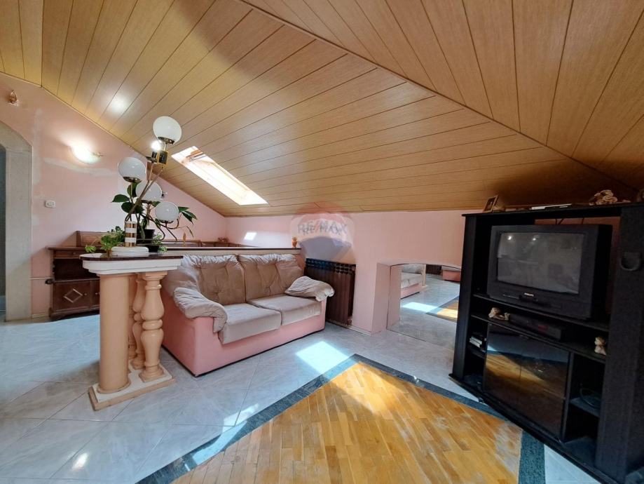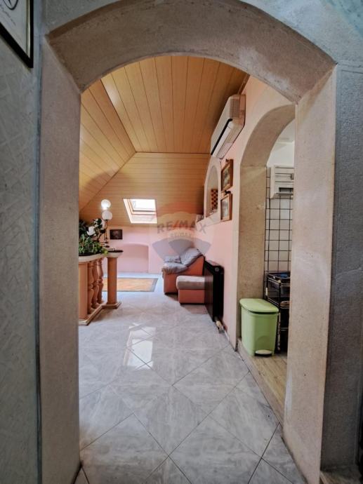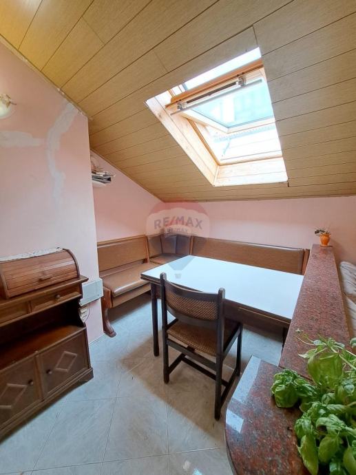 Stan u potkrovlju koji se sastoji od hodnika, sobe, kupaone, kuhinje, dnevnog boravka i spremišta, spremište 2, te stubište i predprostor sveukupne površine stana sa pripadajućim stubištem i predprostorom 52,02 m2.