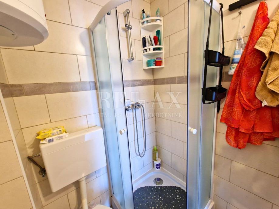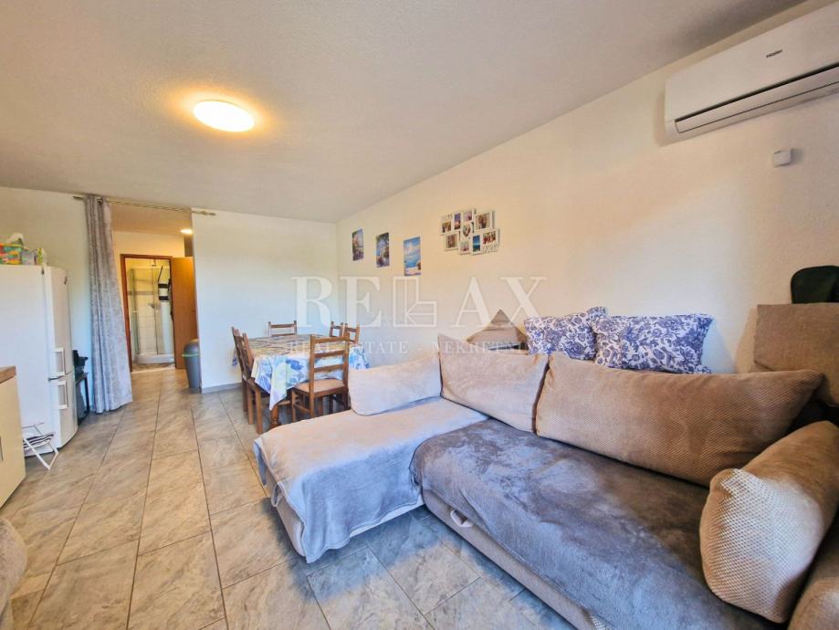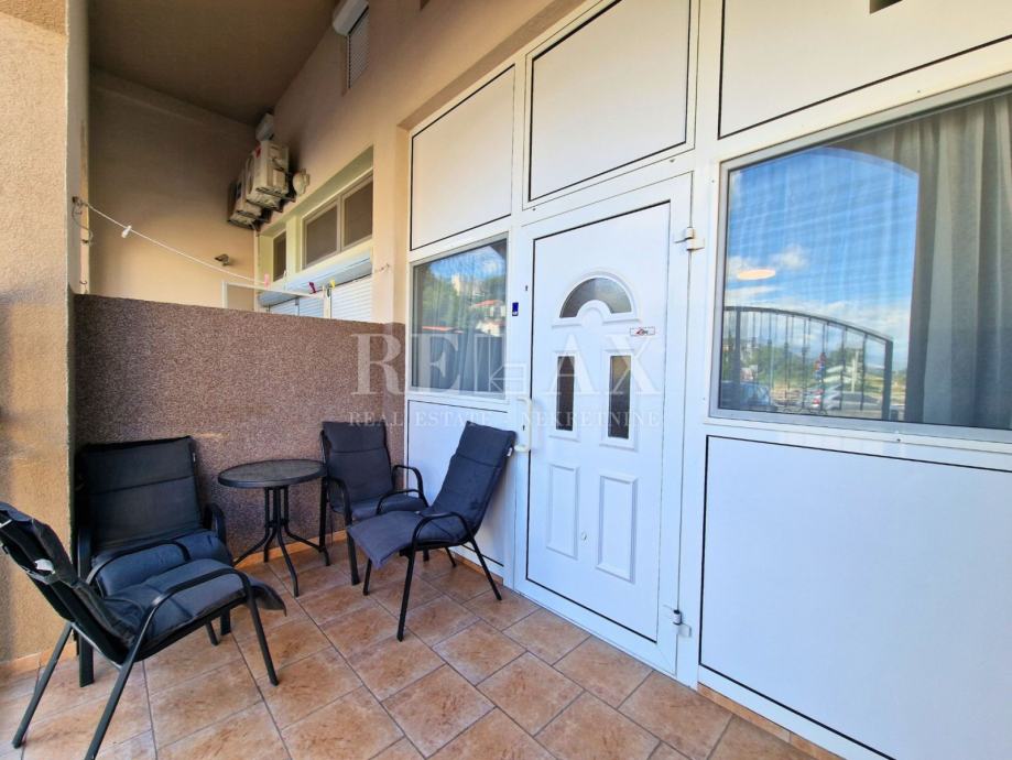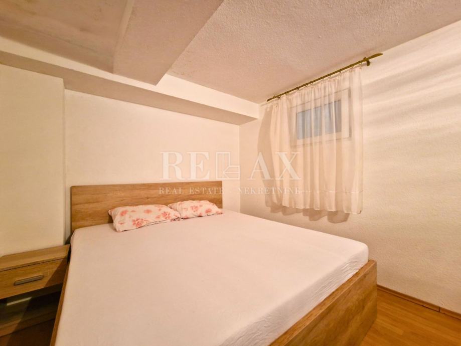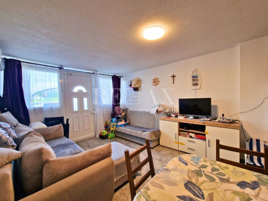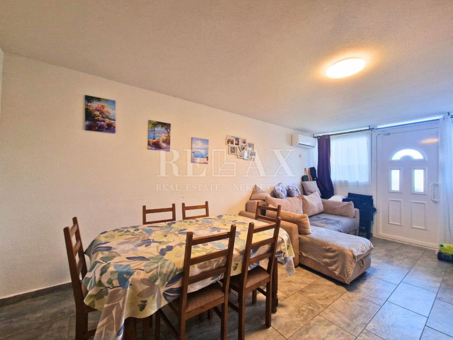 Ulaz u stan vodi preko natkrivene terase, savršene za opuštanje u toplijim mjesecima. U prizemlju se nalazi dnevni boravak, kuhinja s blagovaonicom, kupaonica i praktičan prostor za vešeraj smješten ispod unutarnjih stepenica. Kat stana obuhvaća tri spavaće sobe povezane hodnikom u kojem je postavljen dodatni klima uređaj kako bi se osigurala ugodna temperatura u cijelom prostoru.