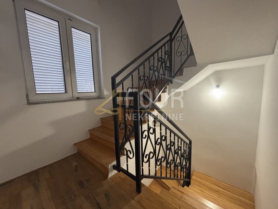 Prostire se kroz prizemlje, kat i potkrovlje te je smještena na parceli površine 88 m2, uz pripadajuću okućnicu od 11 m2. Kombinacija kamenog prizemlja i nadograđenog kata s potkrovljem daje ovoj nekretnini poseban šarm, dok je adaptacija izvedena 2020. godine, nakon čega se kuća prodaje potpuno namještena.