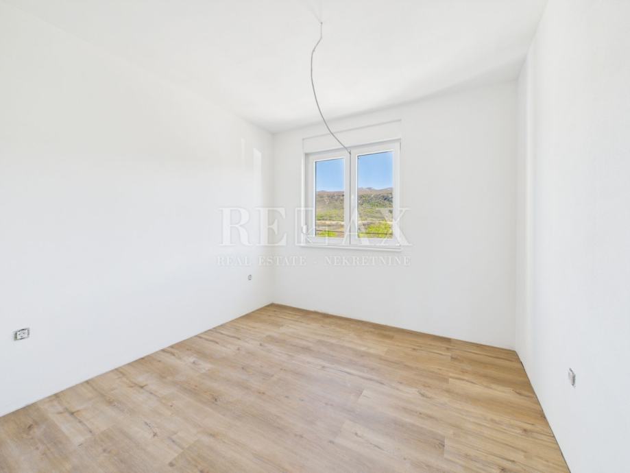 Stan se sastoji od kuhinje, blagovaonice i dnevnog boravka otvorenog koncepta, dvije spavaće sobe, kupaonice, dodatne ostave i natkrivene loggie koja pruža pogled na okolno zelenilo i djelomično na more. Zahvaljujući jugozapadnoj orijentaciji, prostor obiluje prirodnom svjetlošću i toplinom tijekom cijelog dana.