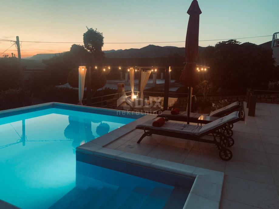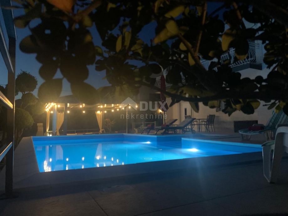 Luksuzna kuća ukupne kvadrature 240 m2 sastoji se od suterena, prizemlja i kata, smještena na okućnici od 650 m2, a nalazi se svega 180 metara od mora.
