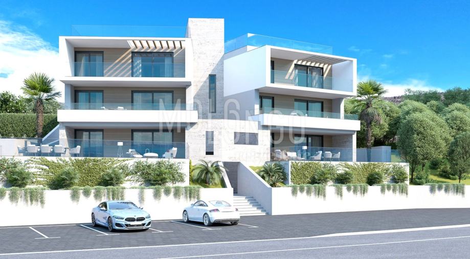 U prodaji je prekrasan penthaus u novogradnji sa 6 stanova udaljenoj 100 m od mora i centra mjesta.