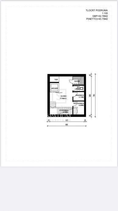 U suterenu su predviđeni sauna, jacuzzi, fitness, kupaona, toalet i kotlovnica.