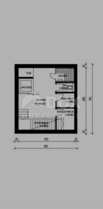 Nekretnina se sastoji od podruma, prizemlja i prvog kata te joj pripada bazen i garaža.