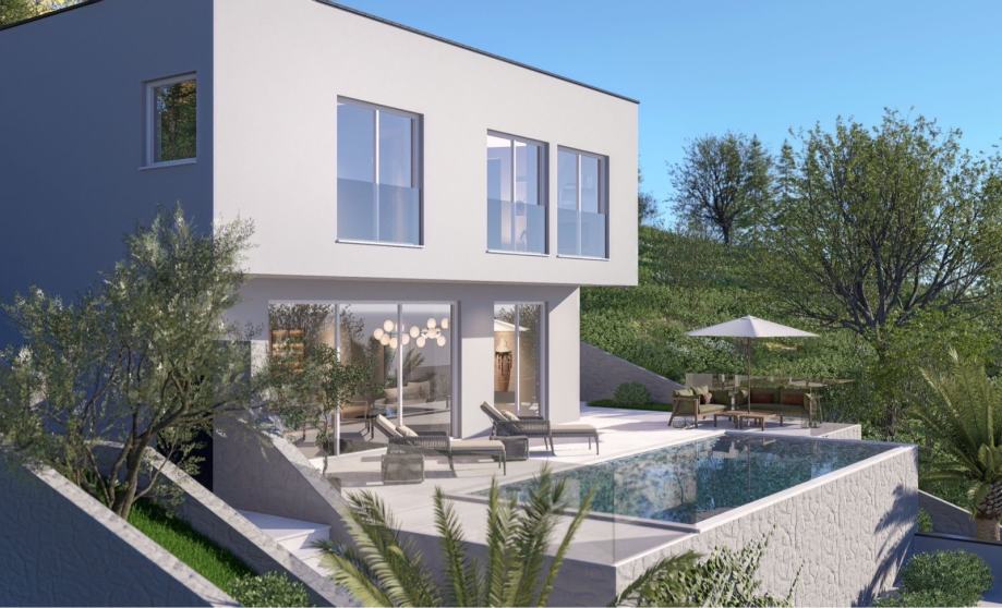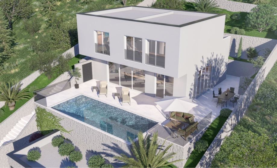 Prodaje se villa u izgradnji na parceli 606 m2 . Prekrasan pogled na more s parcele.