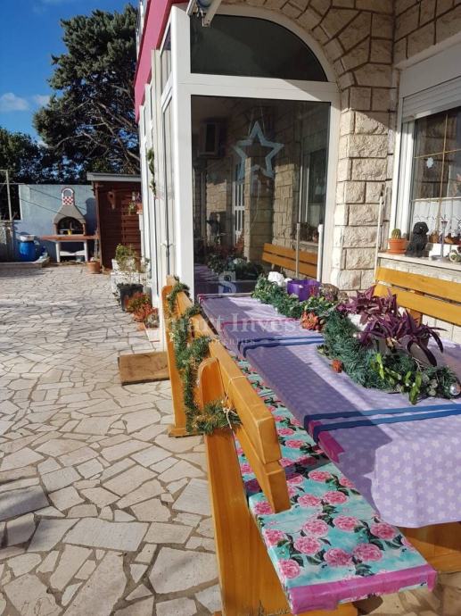 Prvi kat kuće površine 142 m2 i drugi kat kuće površine 137 m2 su potpuno namješteni, te se svaki kat sastoji od 5 spavaćih soba, kuhinje, kupaonice, wc-a, hodnika i terase s prekrasnim pogledom na more!