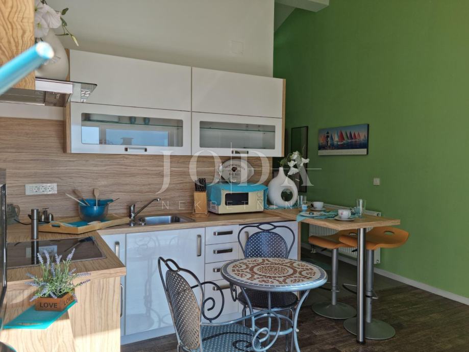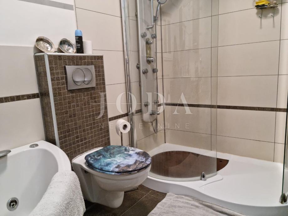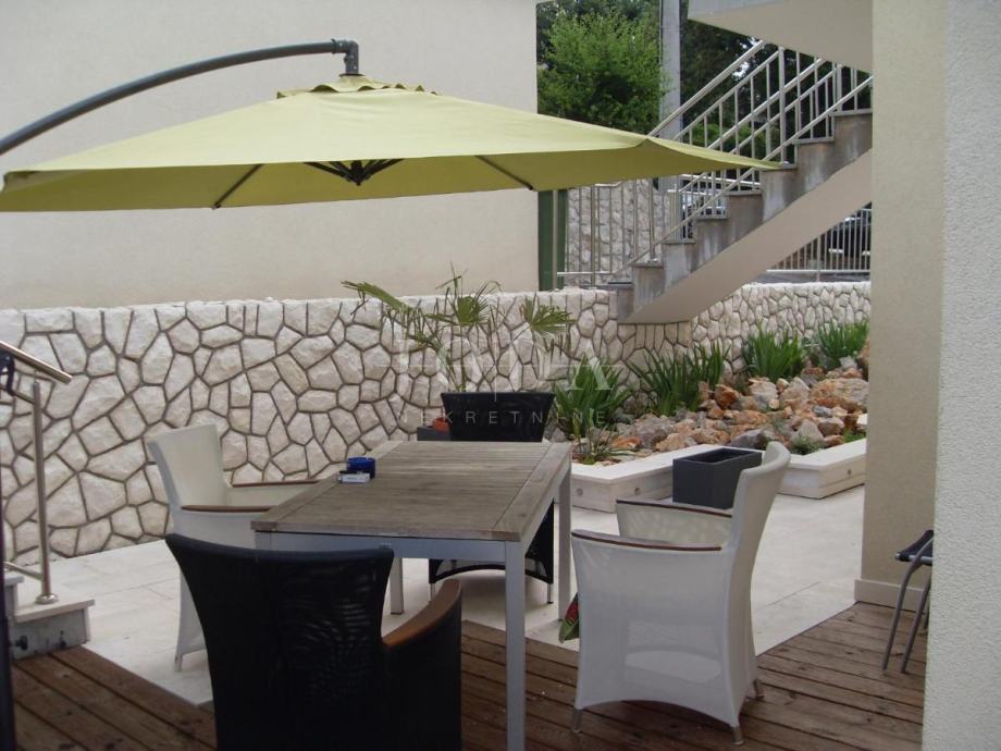 Novi Vinodolski, kuća sa četiri stambene jedinice udaljena od mora 50m. U suterenu se nalazi jednosobni apartmnan sa vanjskom terasom, vrtom, sunčalištem i parkirnim mjestom. U sklopu suterena nalazi se još kotlovnica sa crpkama koje crpe more, te griju i hlade kompletan objekt na morsku vodu te praonica rublja. Prizemlje se sastoji od dvosobnog stana sa dnevnim boravkom, vanjske terase sa kaminom, vanjskim tušem i garažom. Na katu se nalaze dva jednosobna apartmana, terasa i balkon sa prekrasnim pogledom na more. Tri stambene jedinice su u turističkom najmu te jednu koristi vlasnik. Sve kupaonice imaju hidromasažne tuš kabine, materijali koji su ugrađeni su visoke kvalitete. Svi stanovi su klimatizirani. Kuća ima video nadzor i protuprovalni sustav. Nekretnina na izvrsnoj lokaciji!