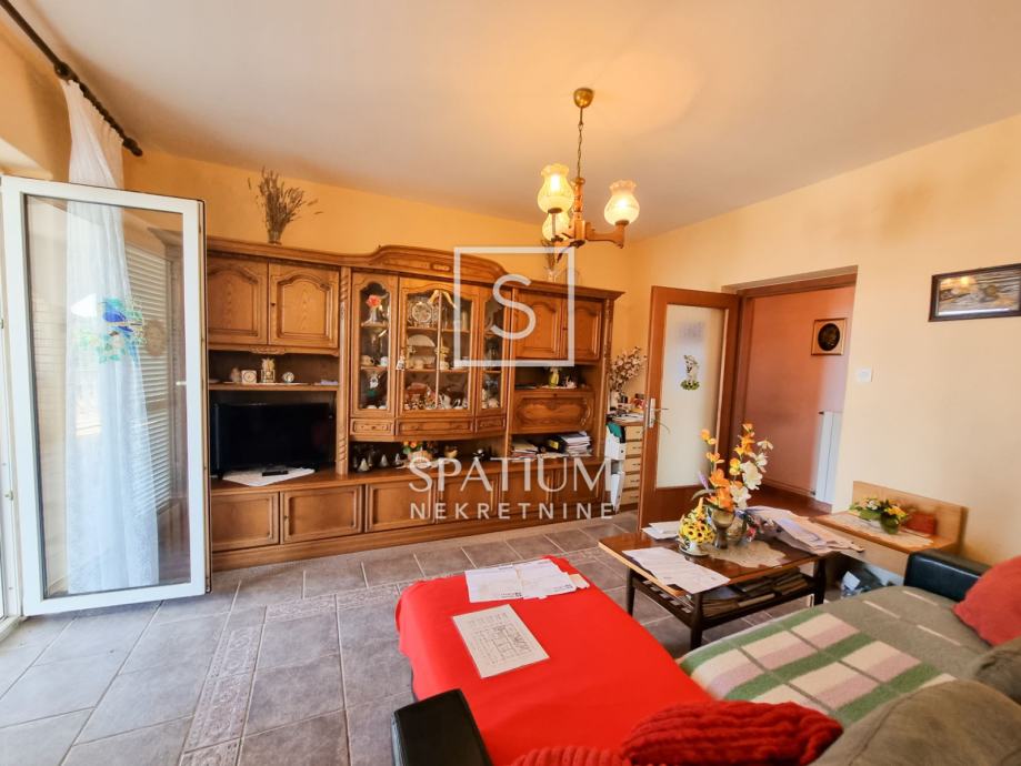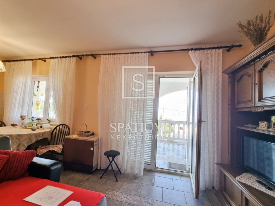 Na prvom katu nalazi se trosoban stan s dnevnim boravkom, velikim balkonom, kuhinjom i blagovaonicom, kupaonicom i toaletom te još dva studio apartmana.