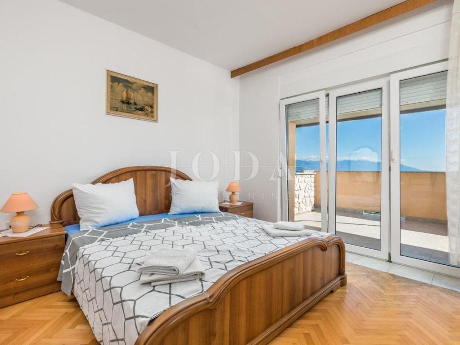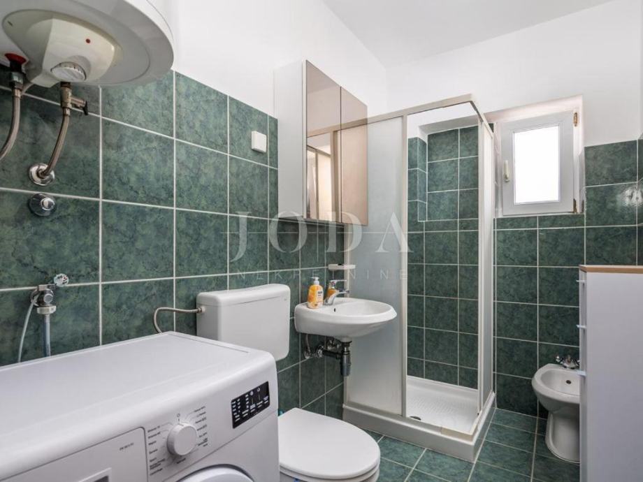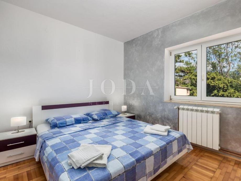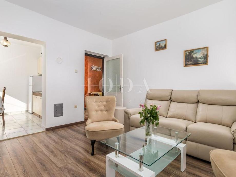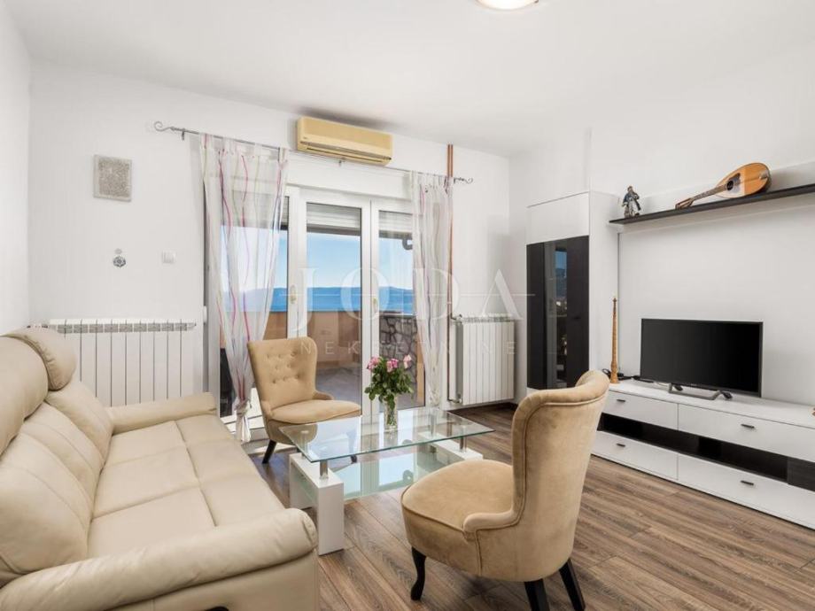 Prodajemo kuću na mirnoj i lijepoj lokaciji na samo 100m od mora. Kuća se proteže na tri etaže. U prizemlju se nalazi jednosobni aprtman sa prostranom terasom. Na prvoj etaži nalazi se novouređeni stan koji se sastoji od kuhinje, blagovaone i dnevnog boravka otovrenog koncepta, dvije spavaće sobe, ulaznog hodnika, kupaone, wc-a i dvije prostrane terase. Na drugoj etaži nalazi se i dvosobni stan, koji ima izlaz na natkrivenu terasu sa koje se pruža predivan pogled na more. Unutarnje stepenice daju mogućnost spajanja dva stana u jednu luksuznu dvoetažnu cijelinu. Kuća je adaptirana 2018. godine (postavljena je nova fasada, izgrađeno spremište i nova kotolovnica za centralno grijanje na naftu, ljetna kuhinja sa sjenicom i kamenim roštiljem, interijer stanova, zelene površine te parking za više automobila). Nekretina idealna za odmor i uživanje ali i kao investicija.