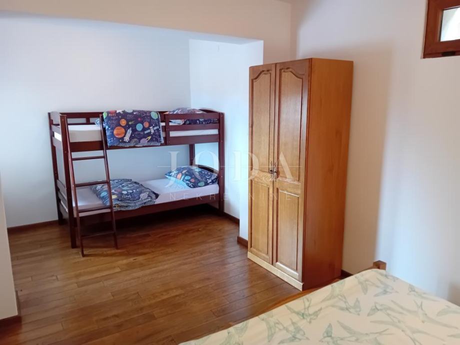 U prizemlju se nalaze apartman i stan. Apartman se sastoji od kuhnje, dvnevnog boravka, spavaće sobe, kupaone i terase. Stan se sastoji od dnevnog boravka, kuhinje, dvije kupaonice, tri spavaće sobe, ostave, hodnika i terase.Na prvom katu se nalazi stan koji se sastoji od kuhinje, dnevnog boravka, tri spavaće sobe,dvije kupaone, hodnika, ostave i balkona sa lijepim pogledom. Na drugom katu je stan koji se sastoji od kuhinje, dnevnog borava, tri spavaće sobe, hodnika i terase sa koje se pruža prekrasni pogled na more i otok Krk.