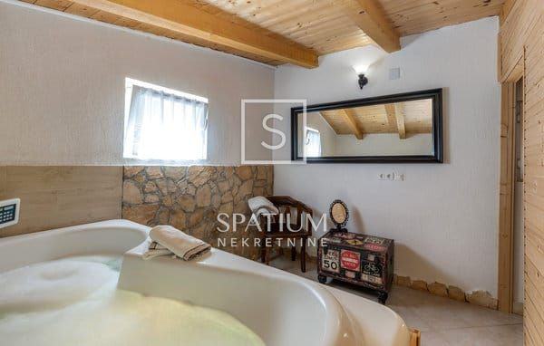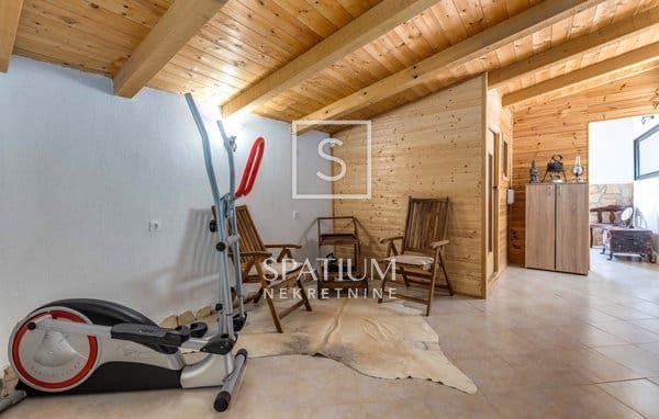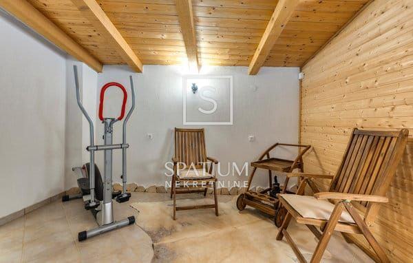 U sklopu uređene okućnice nalazi se mini wellness sa saunom i hidromasažnim bazenom te natkrivena terasa s roštiljem.