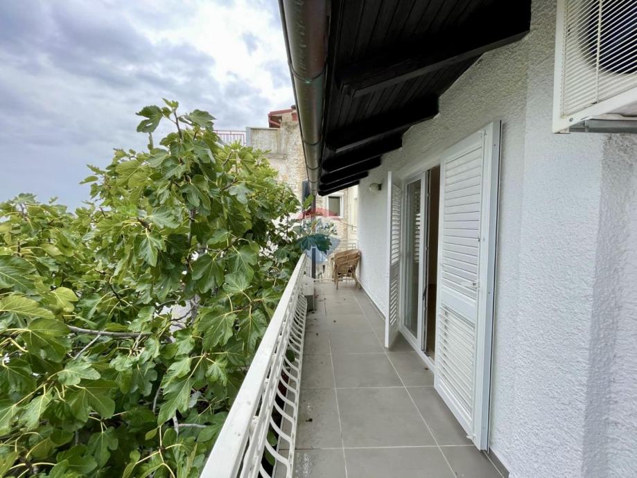 U dvorištu se nalazi otvoreni prostor s malo zelenila, a vanjskim stubištem dolazi se do velike terase s koje se pruža prekrasan pogled na marinu i more.