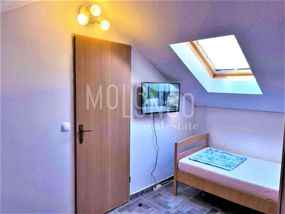 Kuća se sastoji od tri stana, svaki s jednom spavaćom sobom, dnevnim boravkom i kupaonicom. Kuća se prodaje kompletno namještena i u funkciji je turističkog najma.