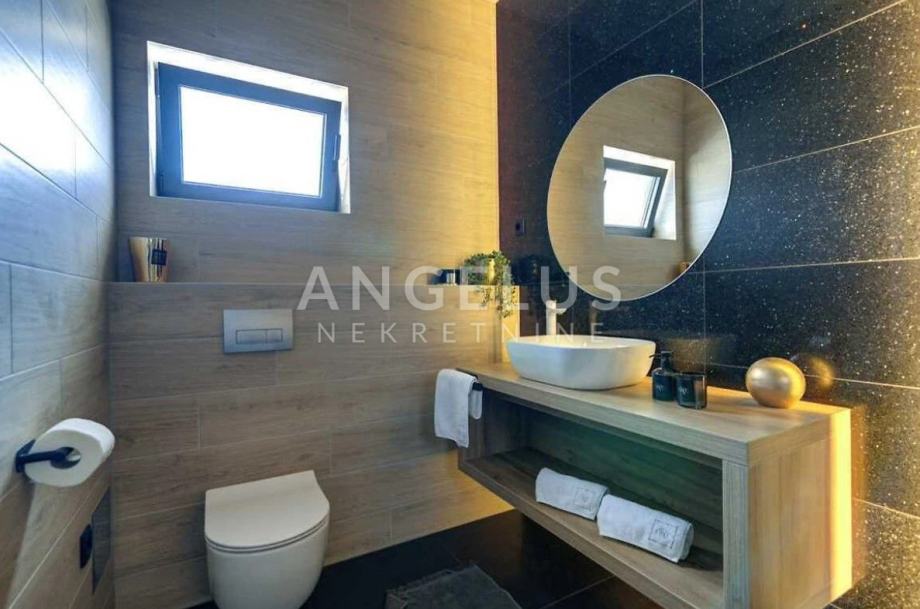 Unutrašnjost ove luksuzne kuće očarava prostranošću i funkcionalnošću, s pažljivo biranim detaljima koji daju osjećaj elegancije i topline. Kuća nudi četiri prostrane spavaće sobe, svaka sa svojom kupaonicom, osiguravajući privatnost i komfor svakom članu obitelji ili gostima. Dnevni boravak je dizajniran kao srce doma, s puno prirodnog svjetla, prostran i elegantno namješten, idealan za opuštanje i druženje. Uz dnevni boravak nalazi se moderna kuhinja, opremljena vrhunskim aparatima, i elegantna blagovaonica koja poziva na obiteljska okupljanja. Dodatni toalet smješten je u prizemlju.