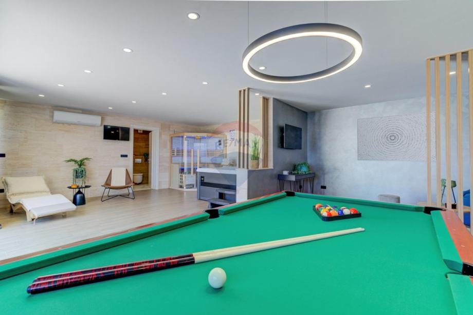 Na parceli se nalazi bazen površine 32 m2 i pomoćni objekt od 88 m2 koji je uređen kao SPA centar (sauna, jacuzzi, biljar, pikado, igraonica za najmlađe i toalet sa tušem).